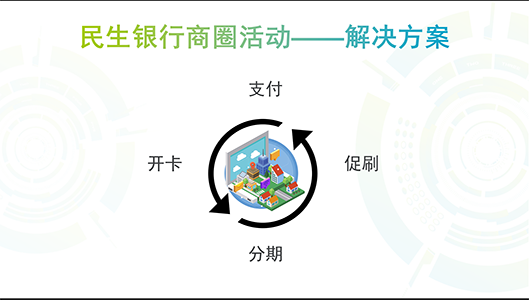 随着各大银行对于信用卡业务的日益重视,信用卡市场竞争激烈,银行活动同质化严重,各类活动无法达到各大银行预期效果。本次商圈活动项目区别与以往单一的银行活动,利用商圈内的优质资源,为民生银行打造以开卡、支付、促刷、分期四位一体的信用卡场景应用生态圈。